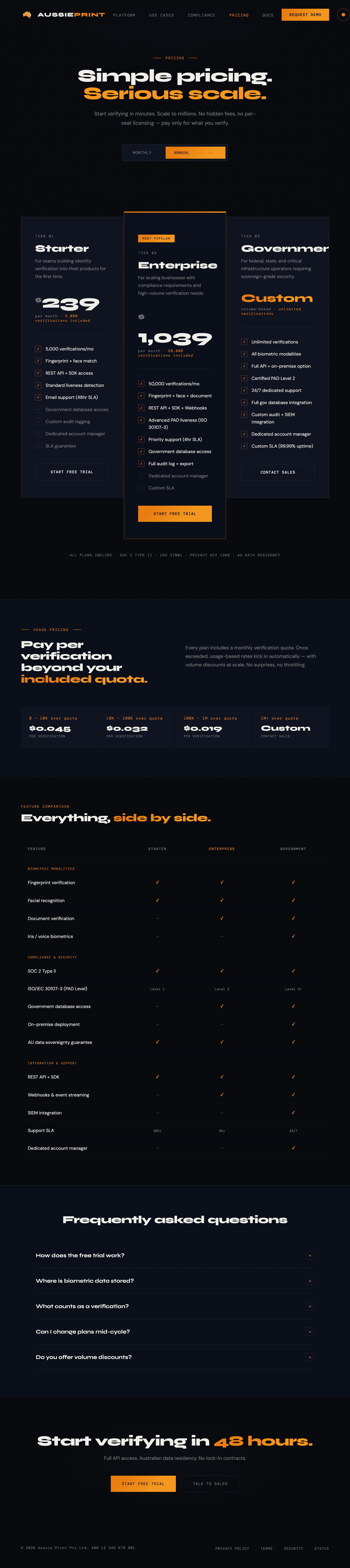 Aussie Print is a biometric identity verification platform built for Australian enterprise — fintechs, border security, healthcare, government.